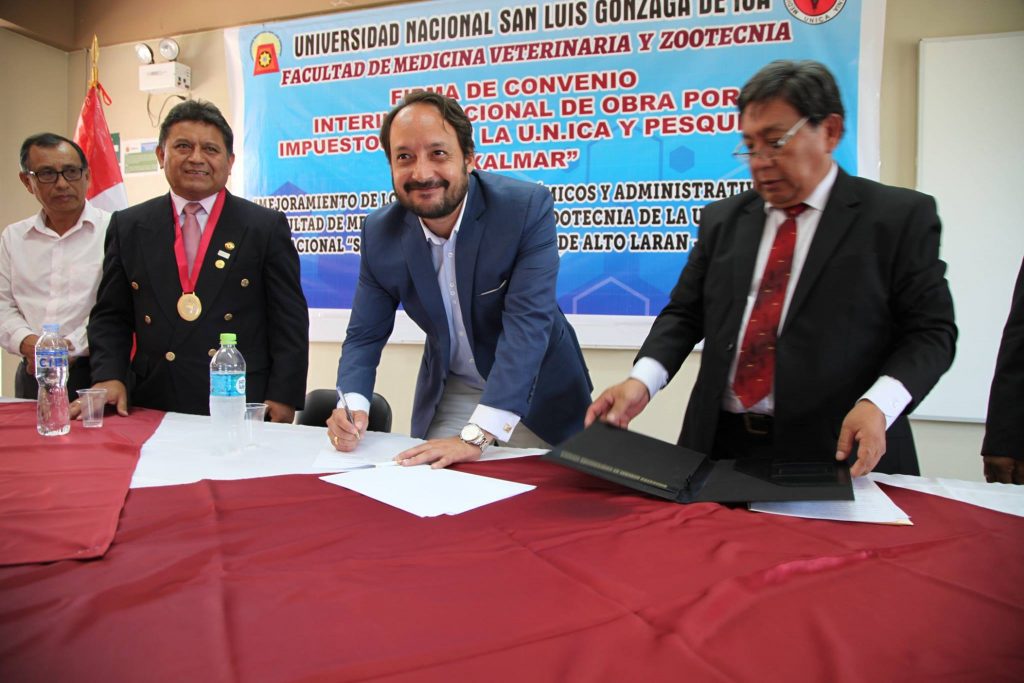 En la provincia de Chincha, la UNICA firmó un convenio interinstitucional con la empresa pesquera EXALMAR S.A.A. a través del cual nuestra institución se convierte en la tercera universidad pública del país en aplicar el mecanismo de obras por impuestos, con la ejecución del proyecto de mejoramiento de los servicios académicos y administrativos de la Facultad de Medicina veterinaria y zootecnia con una inversión de 8 593 805.54 soles.