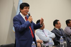 El decano de la Facultad Dr. Freddy Calderón Ramos destacó los avances en la construcción de sus modernos ambientes académicos y administrativos y auguró mejoras una vez se culmine. Pidió a los estudiantes seguir esforzándose en su formación profesional.