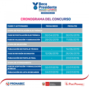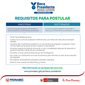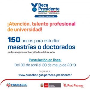 Pronabec Perú convoca al talento profesional universitario, a participar de Beca Presidente de la República.
