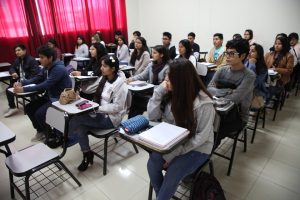 Estudiantes de la facultad de Ciencias de la Comunicación, Turismo y Arqueología en su primer dia de clases del semestre académico 2019 II.