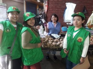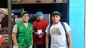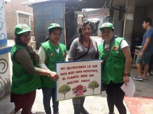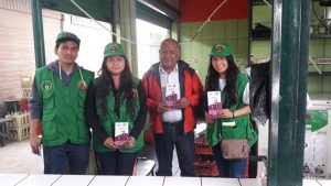 Imágenes de la entrega de trípticos y sensibilización sobre residuos sólidos y reciclaje, por parte de estudiantes de la facultad de Administración del 7mo «B», siendo responsable de aula el Dr. Orlando Gabriel Hernández.