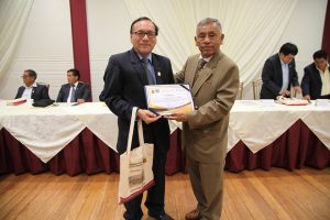 Al final del encuentro las palabras de Clausura estuvo a cargo del Vicerrector de Investigación y Desarrollo, Dr. Martín Alarcón Quispe quien además les hizo entrega de unos presentes a los asistentes.