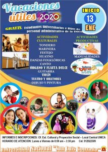 Dirigido a estudiantes universitarios e hijos de personal administrativo de la UNICA, de manera GRATUITA.