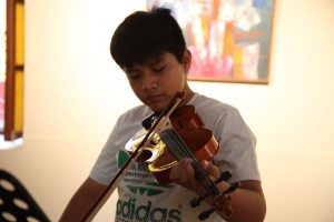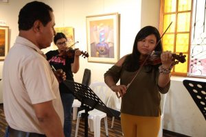 Estudiantes universitarios e hijos del personal administrativo, aprender tocar violín, bajo la dirección del profesor Miguel Ferreyra Palacios.