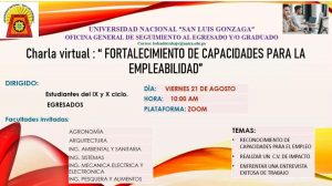 La Oficina General de Seguimiento al Egresado y/o Graduado invitan a la charla virtual: