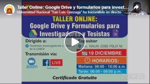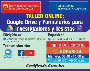 En el marco de los 65° aniversario de creación de la UNICA, culminó el día de ayer el taller práctico denominado “HERRAMIENTAS DIGITALES DE GOOGLE PARA LA GESTIÓN ADMINISTRATIVA”, el cual tuvo como principal objetivo fortalecer las capacidades de los servidores de la universidad en el uso de herramientas digitales para la gestión administrativa aplicando Google.
