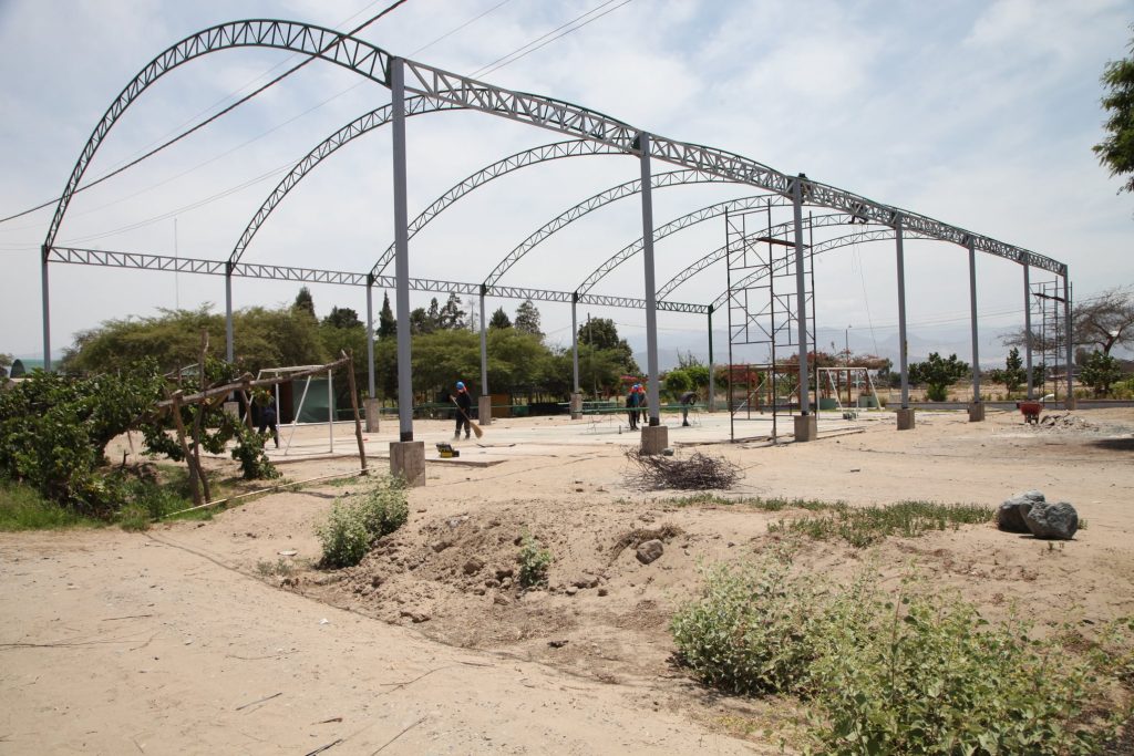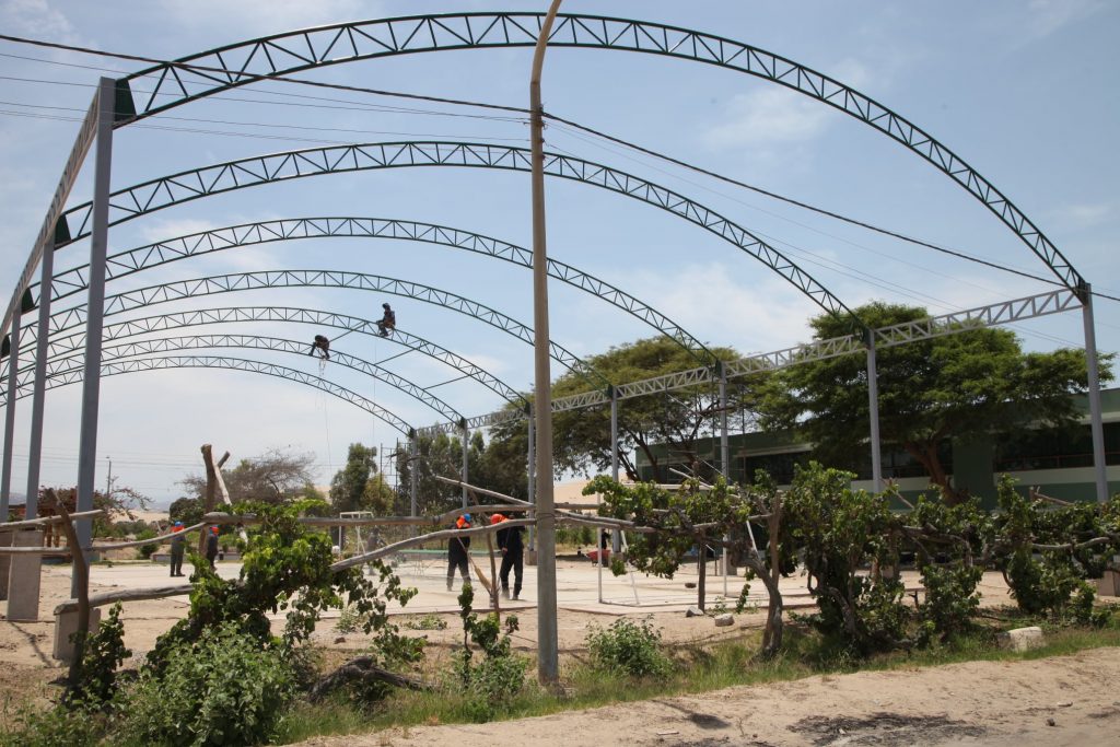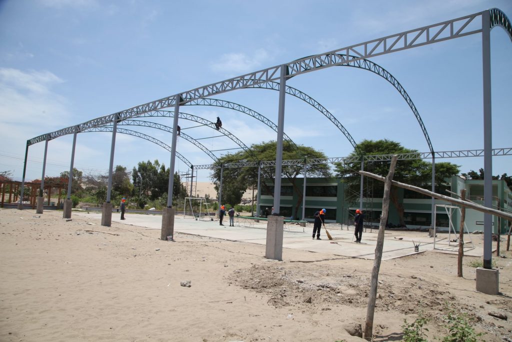 A la fecha así van mejorando los diversos ambientes de la facultad de Agronomía. Visitamos la obra del área multideportiva donde se puede apreciar que se viene realizando el techado de toda el área, además incluirá los tableros para la práctica del básquet, una net para vóley y los arcos para el futsal, entre otras mejoras. Estos trabajos corresponden a la ejecución del Plan de Emergencia de la UNICA.