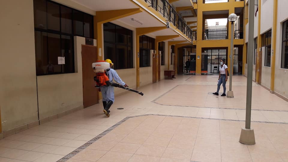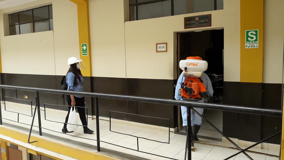 Jornada de fumigación y desinfección en los diversos ambientes de la universidad, para prevención y control del COVID-19