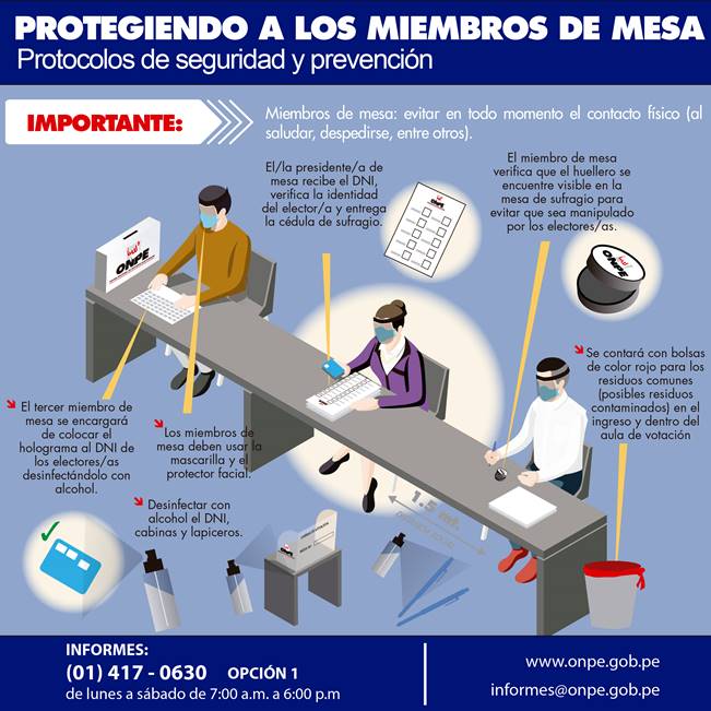 #EleccionesPerú2021 | Ten en cuenta los Protocolos de Seguridad y Prevención contra la COVID -19 que se han aprobado, para que los electores podamos asistir a votar en las Elecciones Generales del 11 de #Elecciones2021Para mayor información de los protocolos puedes ingresar al siguiente enlace:_ https://www.onpe.gob.pe/…/2021/EEGG/bioseguridad.html