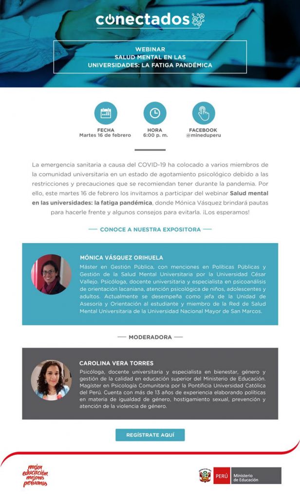 #Minedu | Webinar: Salud mental en las universidades: La fatiga pandémica.