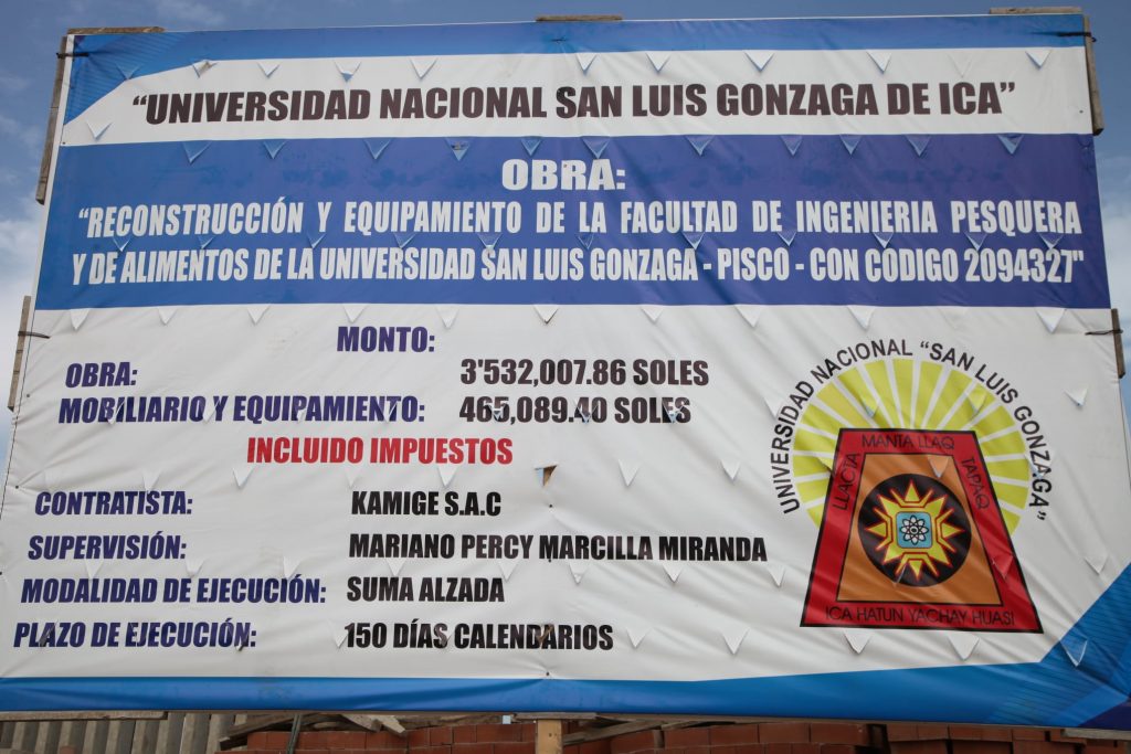 Se inicio la obra de “Reconstrucción y equipamiento de la facultad de Ingeniería Pesquera y de Alimentos”, esta obra consiste en el reforzamiento de las columnas de los pabellones administrativos, laboratorios, aulas, además se colocarán luminarias, puertas, ventanas, acabados de toda la infraestructura de la facultad.