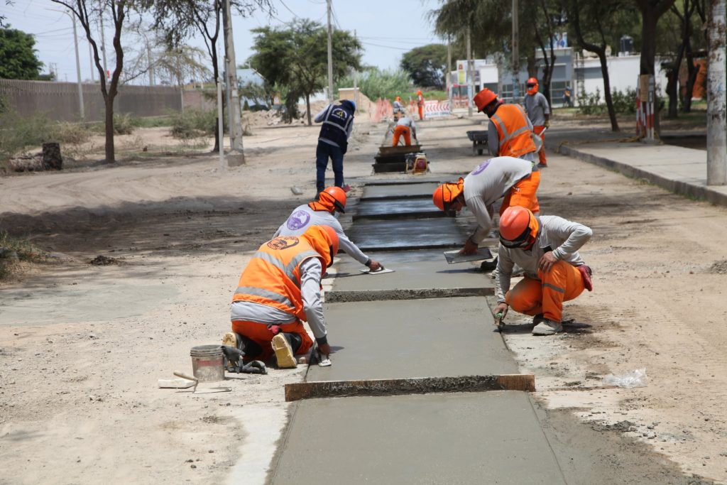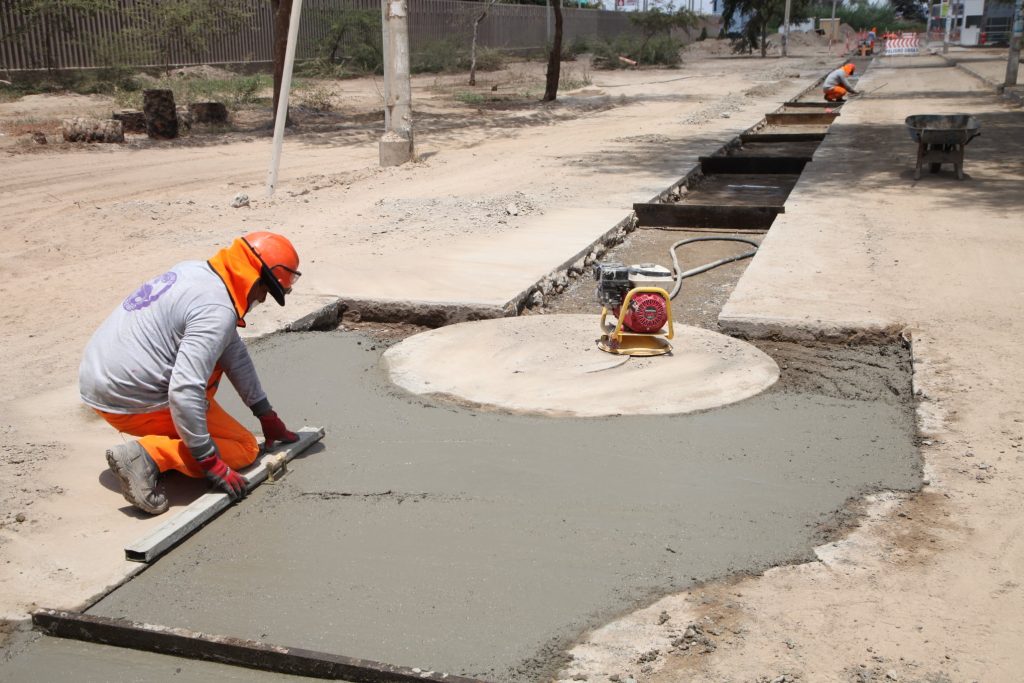 Prosiguen los trabajos en la obra de “Mejoramiento y ampliación del agua potable y alcantarillado en la prestación de servicio educativo en la Ciudad Universitaria”. Podemos apreciar que luego del relleno, nivelación y compactación por capas en la red colectora se viene colocando el pavimento rígido.