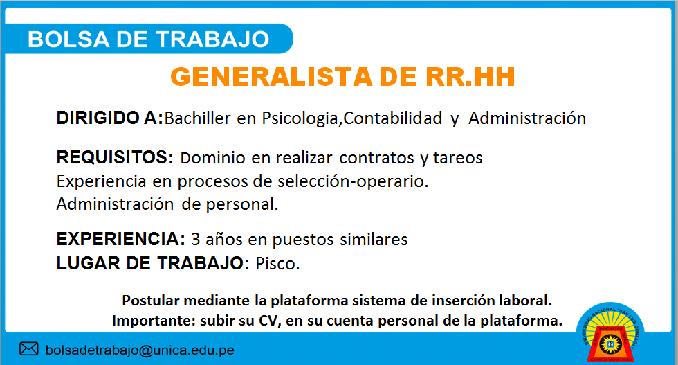 Link: http: //bolsadetrabajo.unica.edu.pe/