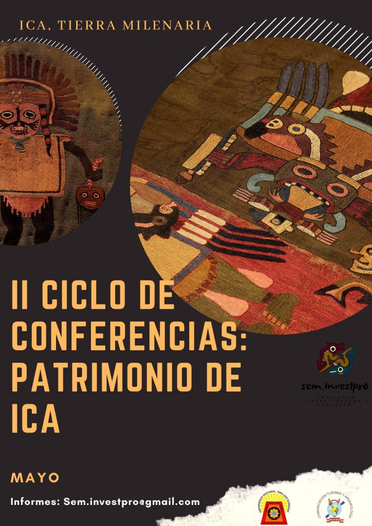 El Semillero de investigación «Investigación y Progreso» de la carrera de arqueología de la Universidad Nacional «San Luis Gonzaga» de Ica, Perú. Les invita a participar en el «II Ciclo de Conferencias: Patrimonio de Ica».