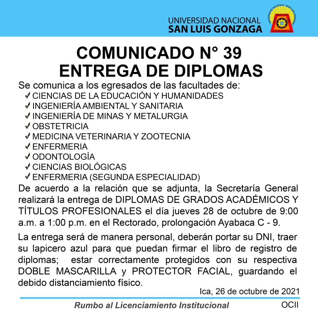 #Comunicado | Entrega de diplomas de grados y títulos.