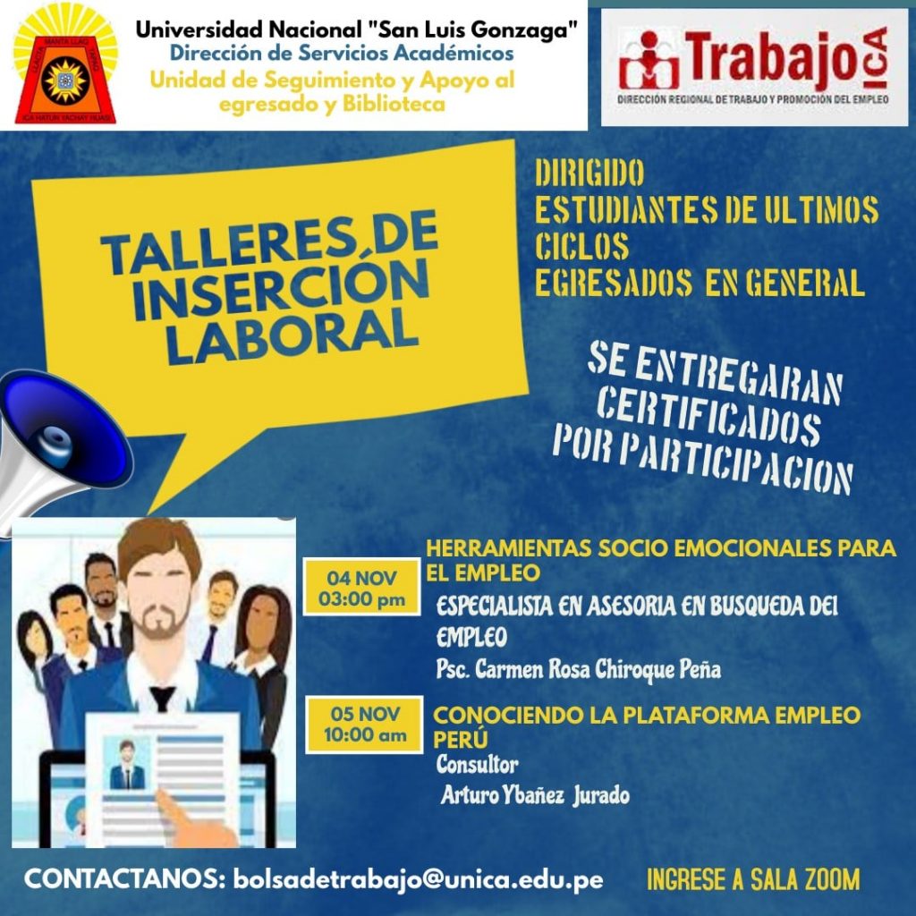 #ServiciosAcadémicos | Participa en los talleres de inserción laboral , dirigido a estudiantes de los últimos ciclos y egresados en general.