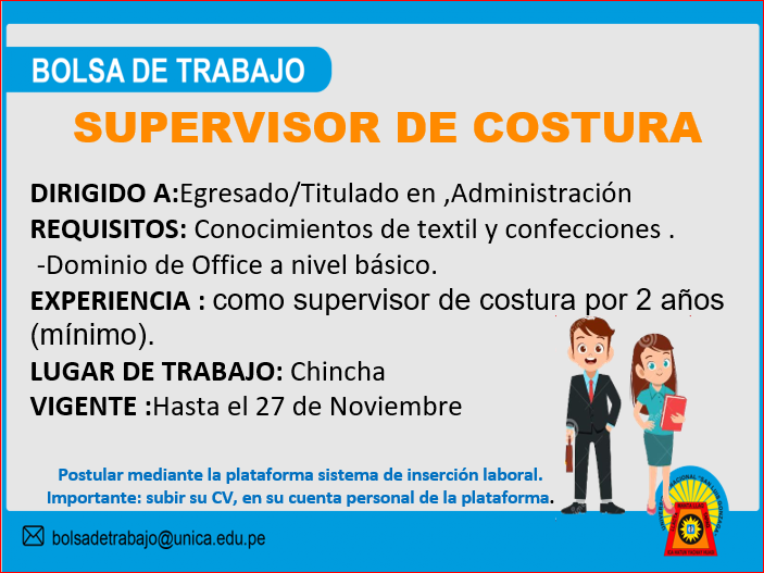 #BolsaDeTrabajo | ENLACE PARA EL INGRESO A LA PLATAFORMA https://bolsadetrabajo.unica.edu.pe/