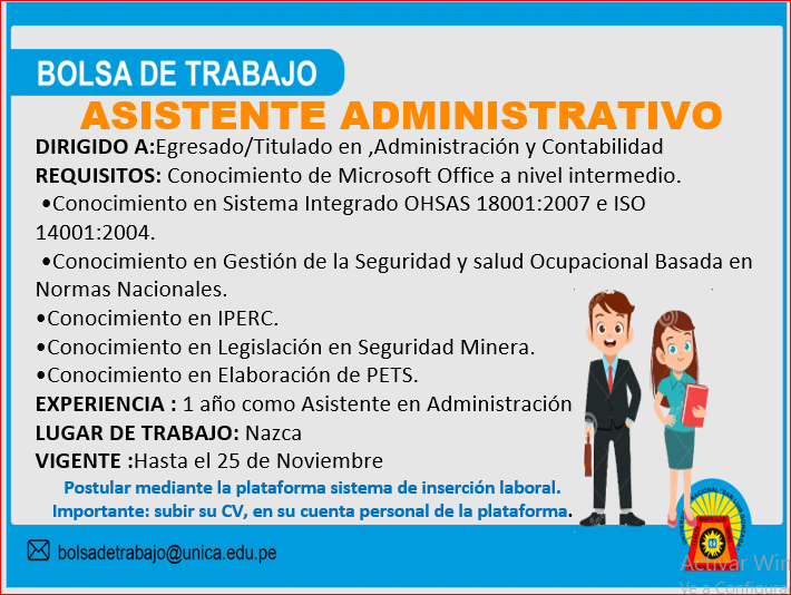 #BolsaDeTrabajo | ENLACE PARA EL INGRESO A LA PLATAFORMA https://bolsadetrabajo.unica.edu.pe/