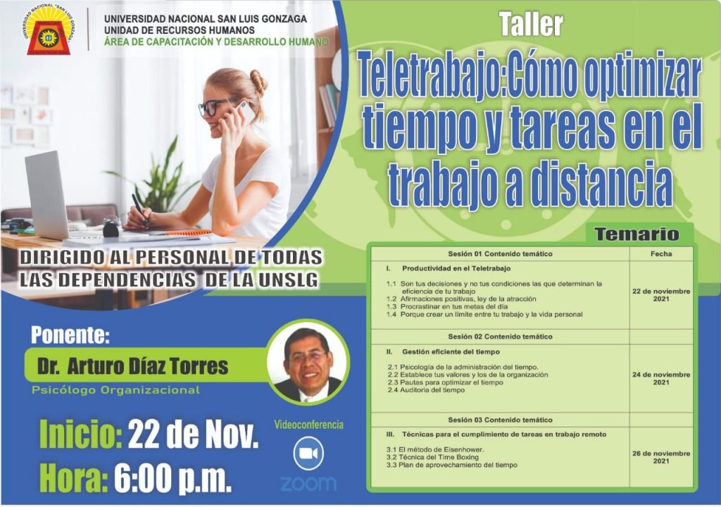 Publicado el 21 noviembre, 202121 noviembre, 2021 por noticiasunicaTeletrabajo: cómo optimizar tiempo y tareas en el trabajo a distancia. #Capacitación | Teletrabajo: cómo optimizar tiempo y tareas en el trabajo a distancia. https://www.facebook.com/UnicaSLG/posts/4555165711227272