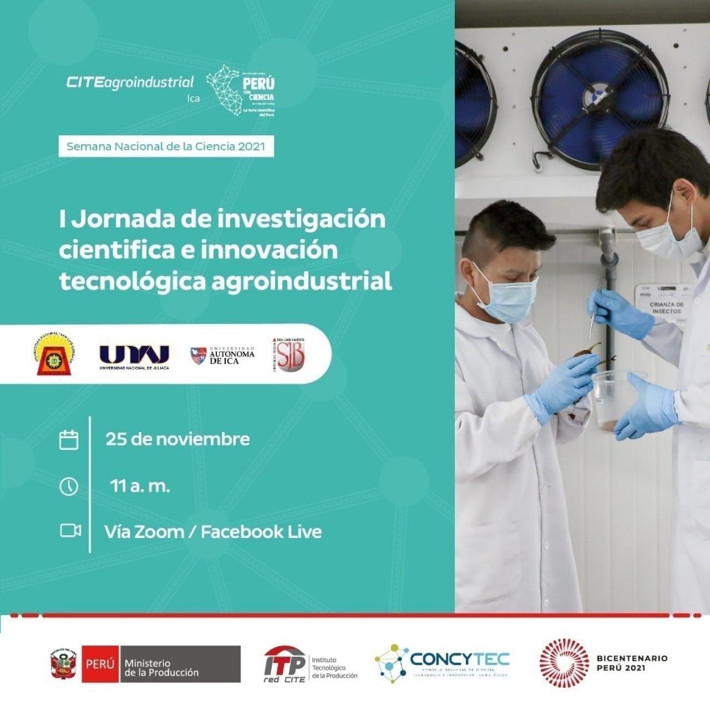 Este jueves 25 de noviembre es la I JORNADA DE INVESTIGACIÓN CIENTÍFICO E INNOVACIÓN TECNOLÓGICOS AGROINDUSTRIAL.
