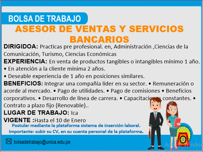 Enlace para el ingreso a la plataforma: https://bolsadetrabajo.unica.edu.pe/