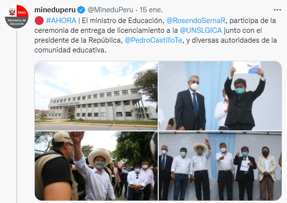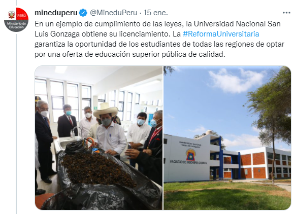 #LicenciadaSunedu | Desde su cuenta de Twitter el Ministerio de Educaciòn sobre el Licenciamiento de la UNICA.