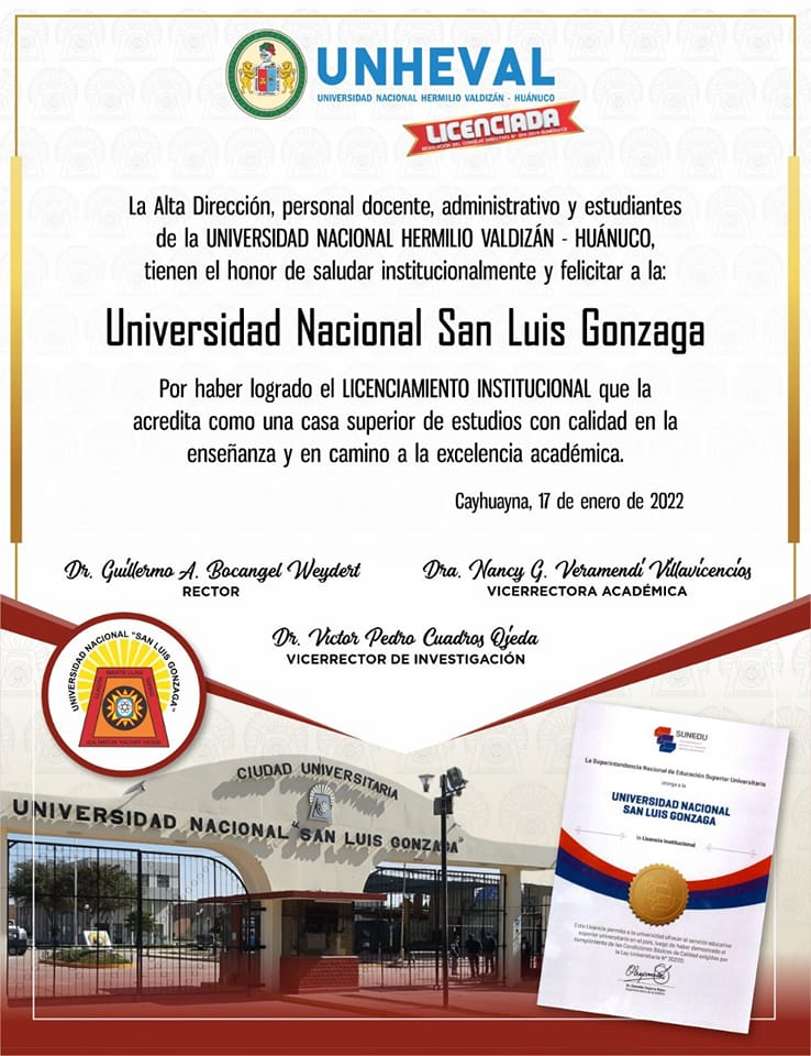 #Licenciamiento | Nuestro agradecimiento a la Universidad Nacional Hermilio Valdizán por enviarnos sus felicitaciones a nuestro Licenciamiento Institucional.