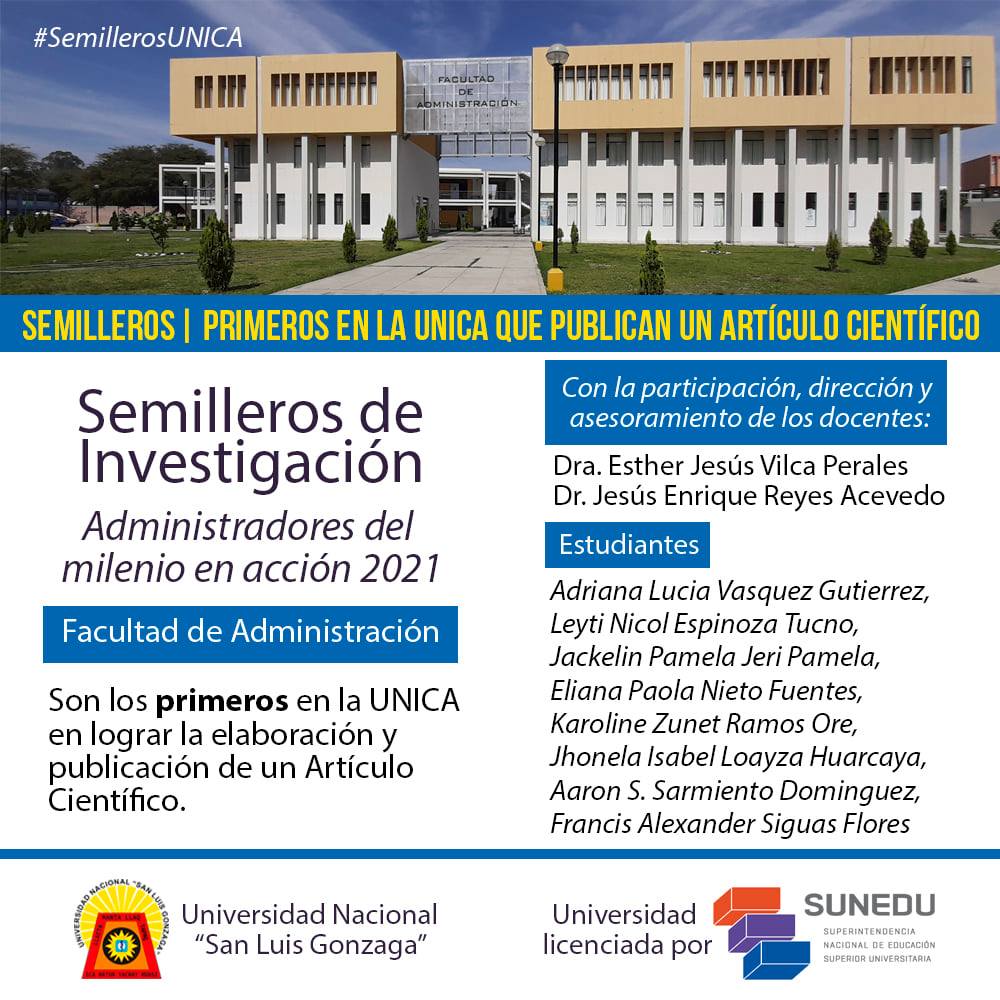 #Semilleros | ¡Felicitaciones! #UnicaLicenciada Los estudiantes miembros del Semillero de Investigación Administradores del milenio en acción 2021, de la facultad de Administración, son los primeros de la institución, en lograr la elaboración y publicación de un artículo científico.