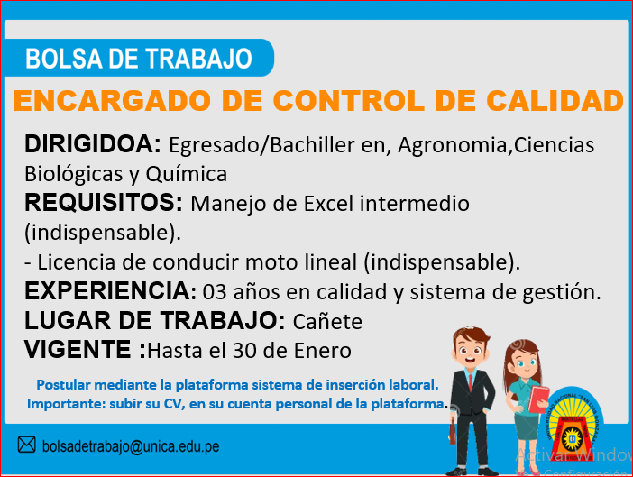 Enlace para el ingreso a la plataforma: https://bolsadetrabajo.unica.edu.pe/
