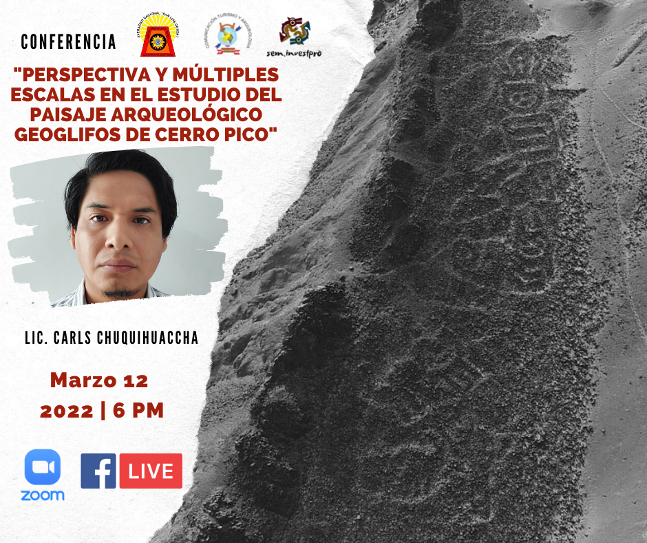 #Conferencia | Conferencia: «Perspectiva y múltiples escalas en el estudio del Paisaje Arqueológico Geoglifos de Cerro Pico». El Semillero de investigación «Investigación y Progreso» de la carrera de arqueología de la Universidad Nacional «San Luis Gonzaga» de Ica, Perú.