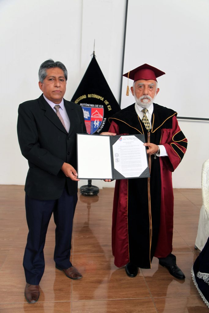 La ceremonia de distinción de Doctor Honoris Causa se realizó en la sede principal de la Universidad Autónoma de Ica donde fue distinguido el director de la escuela de Pos Grado Dr. Roberto Castañeda Terrones en reconocimiento a su labor académica y de investigación.
