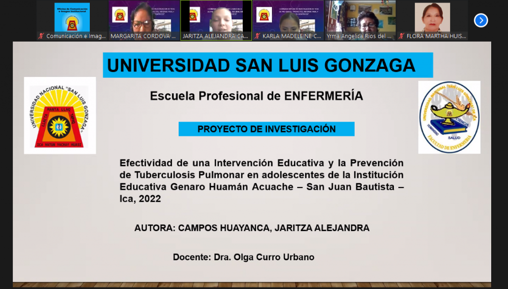 #Facultades | Con éxito la facultad de Enfermería a través de la Unidad de Investigación viene realizando la I Jornada virtual de investigación de tesis de pregrado.