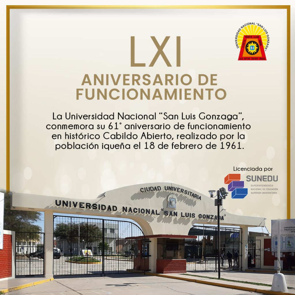 #UNICA | Un día como hoy 18 de febrero en 1961, entra en funcionamiento, después de 5 años desde su creación, la Universidad Nacional «San Luis Gonzaga».