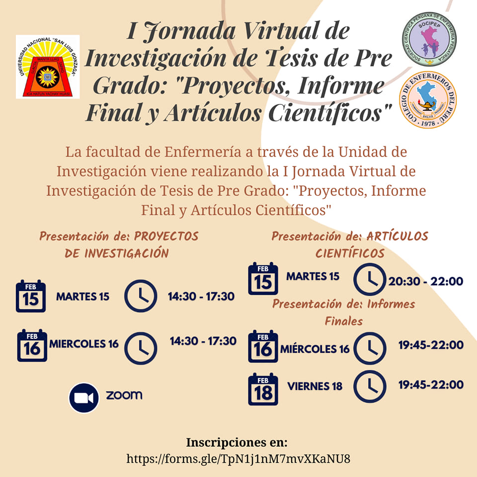 #Facultades | La facultad de Enfermería a través de la Unidad de Investigación viene realizando la I Jornada virtual de investigación de tesis de pregrado.