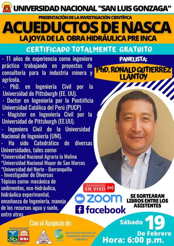 #UNICA | Presenteción de la Investigación Científica: ACUEDUCTOS DE NASCA «La Joya de la Obra Hidráulica de la Cultura Pre Inca»