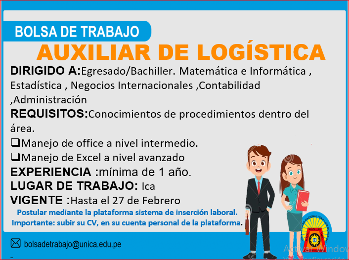 Enlace para el ingreso a la plataforma: https://bolsadetrabajo.unica.edu.pe/