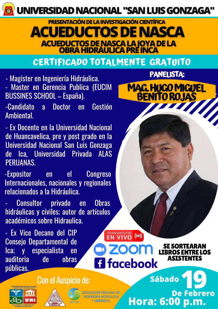 #UNICA | Presenteción de la Investigación Científica: ACUEDUCTOS DE NASCA «La Joya de la Obra Hidráulica de la Cultura Pre Inca»