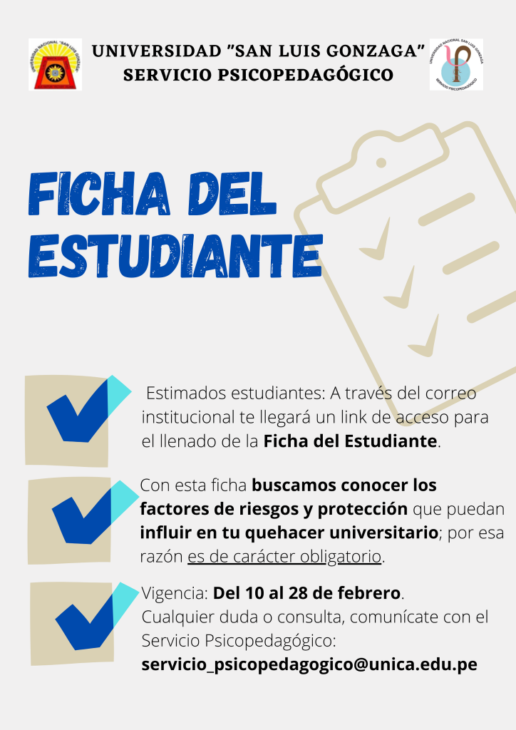 #ServicioPsicopedagógico | A través del correo institucional a todos los alumnos se les enviara la Ficha del Estudiante del Servicio Psicopedagógico para ser llenada hasta el 28 de febrero.