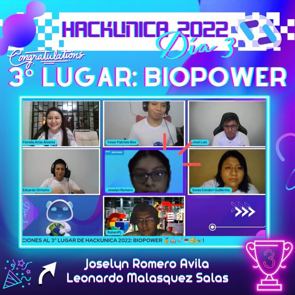 : «BIOPOWER», equipo conformado por Joselyn Romero Avila y Leonardo Fabián Malásquez Salas.