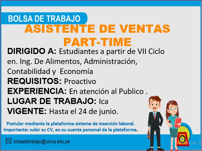 #BolsaDeTrabajo | Asistente de ventas part -time.