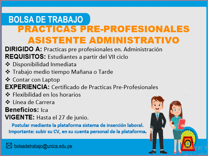 #BolsaDeTrabajo | Prácticas Pre Profesionales – Asistente Administrativo.