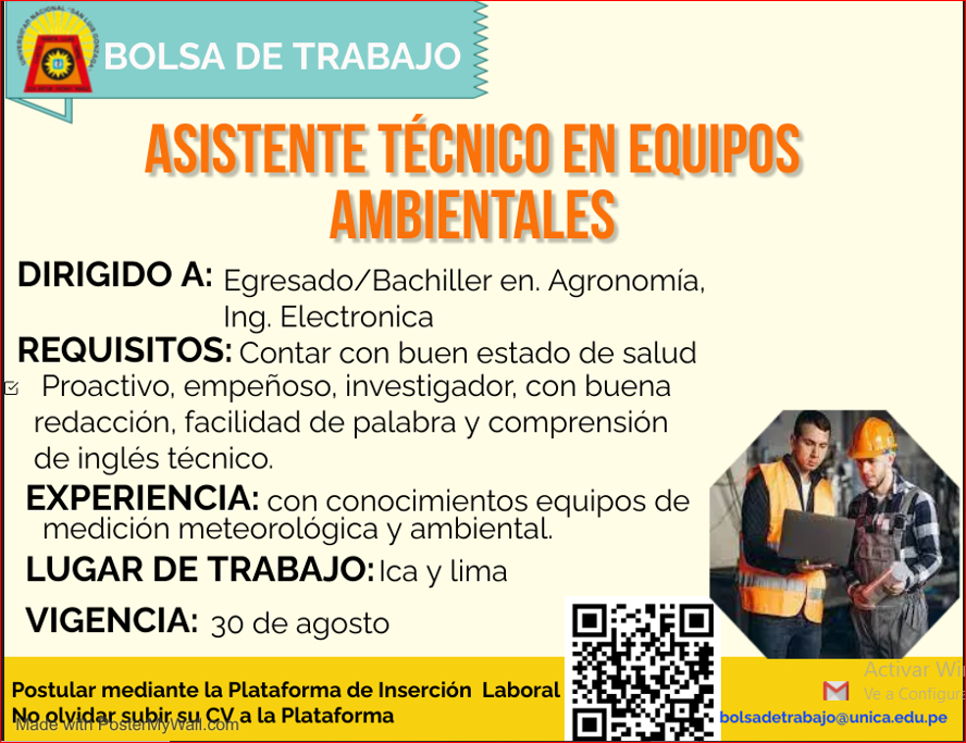 #BolsaDeTrabajo | Asistente Técnico en equipos ambientales.