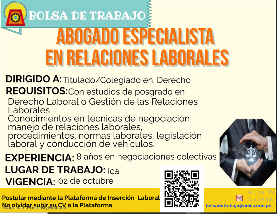 #BolsaDeTrabajo | Abogado especialista en relaciones laborales.
