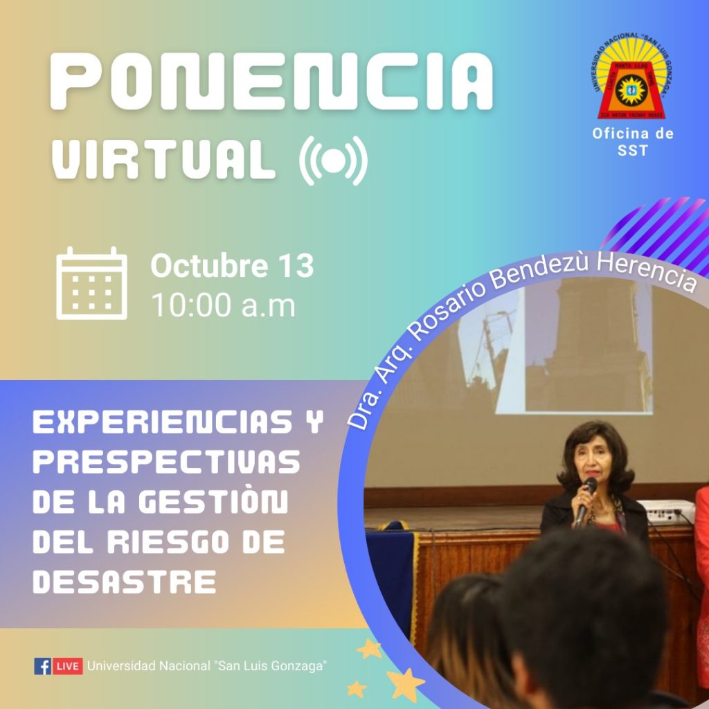 #Ponencia | La dirección de Seguridad y Salud en el trabajo invita a participar de la ponencia virtual: experiencias y perspectivas de la gestión del riesgo de desastre.
