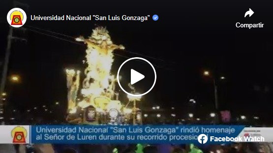 #SeñordeLuren | La Universidad Nacional «San Luis Gonzaga» realizó homenaje al Señor de Luren durante su recorrido procesional realizado el lunes.