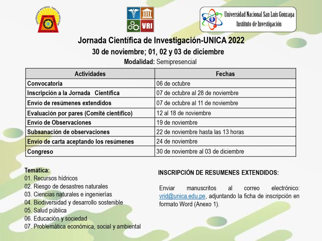 Publicado el 26 octubre, 202226 octubre, 2022 por noticiasunicaJornada Científica de Investigación – UNICA 2022. #VicerrectoradoInvestigación | Jornada Científica de Investigación – UNICA 2022.