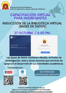 #ServiciosAcadémicos | La dirección de Servicios Académicos invita a los alumnos del I ciclo de los diferentes programas académicos a participar de la capacitación sobre la plataforma de las bases de datos.
