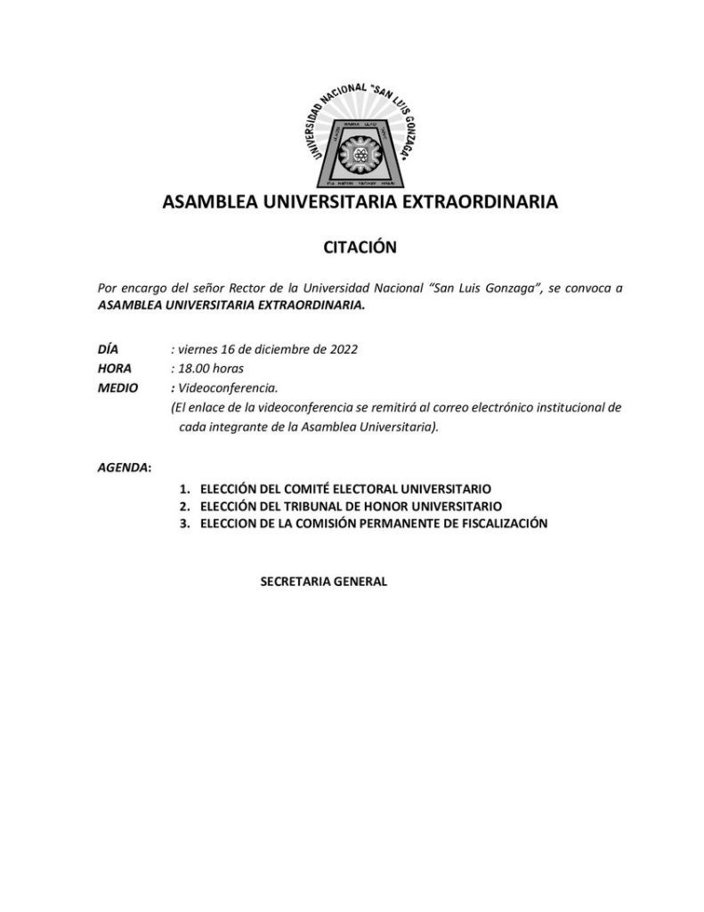 CITACIÓN A ASAMBLEA UNIVERSITARIA EXTRAORDINARIA.