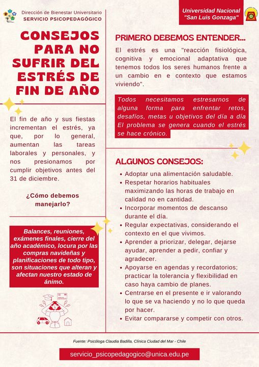 #BienestarUniversitario | El Servicio Psicopedagógico presenta el boletín de salud mental del mes de diciembre, titulado: “Consejos para no sufrir del estrés de fin de año“