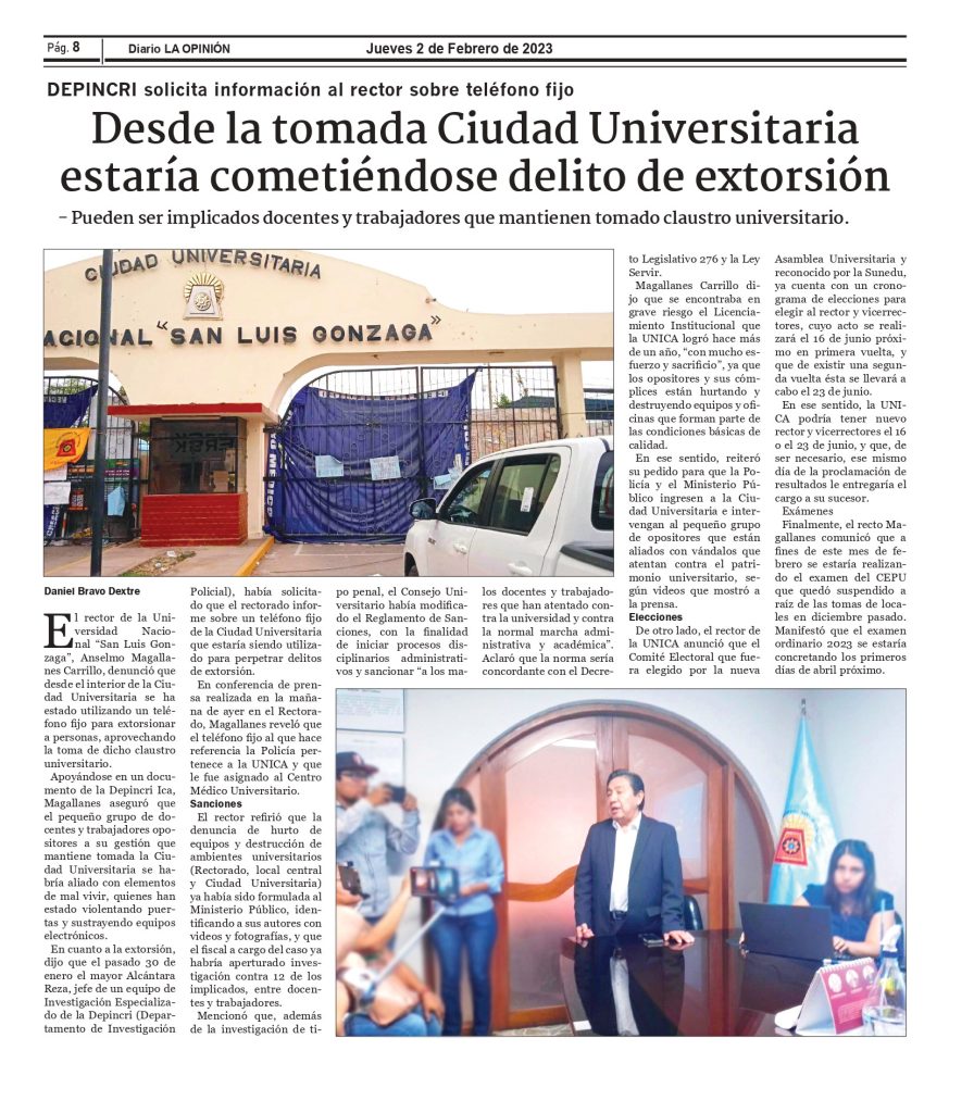 #NoticiasUNICA | El diario de circulación regional La Opinión, incluye en su edición impresa de hoy las declaraciones del rector de la UNICA concedidas a los medios de comunicación.